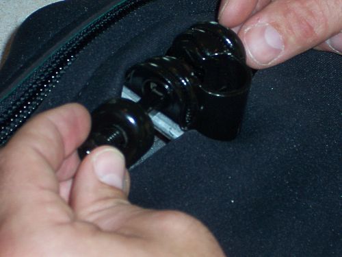 Slide black adaptor and seat onto